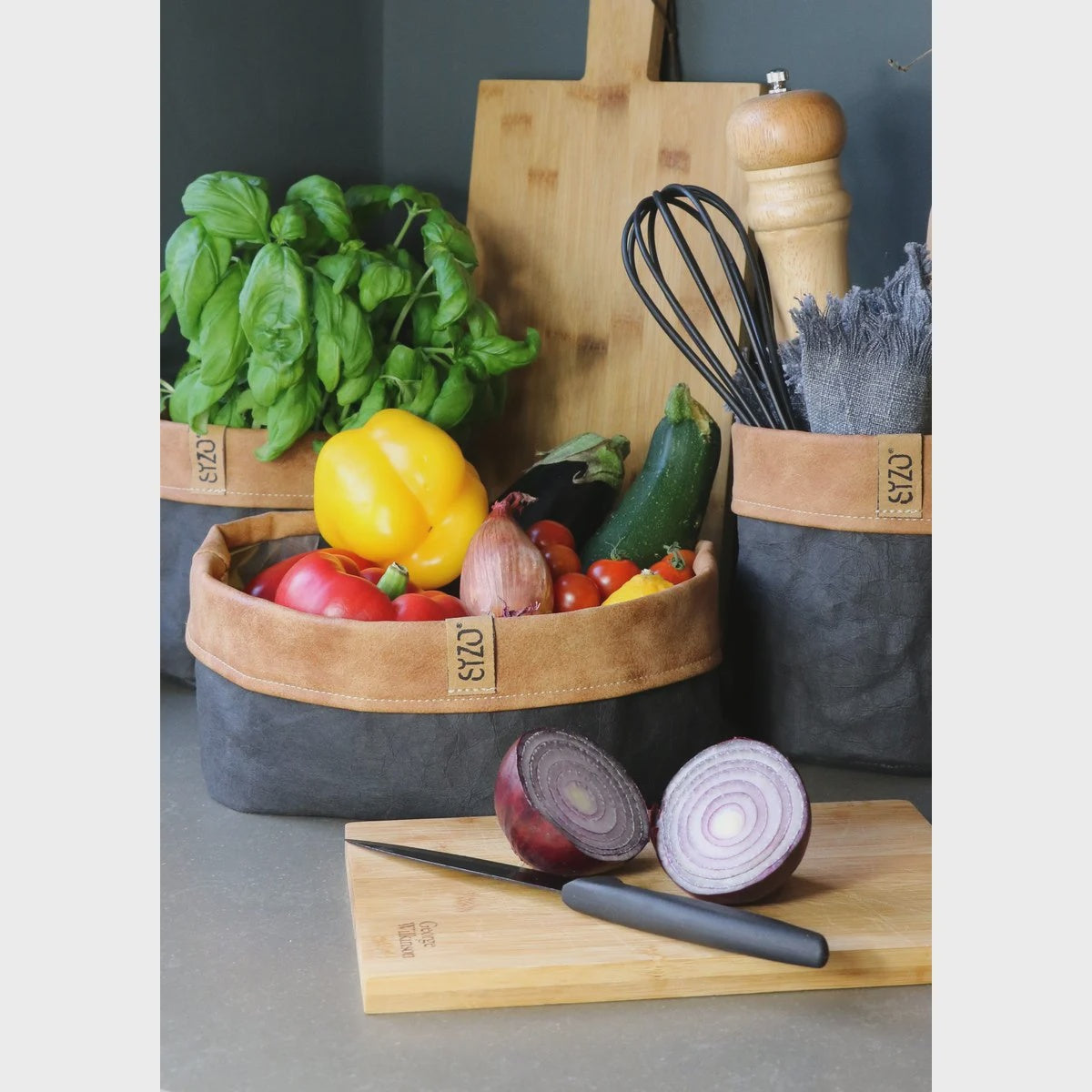 SIZO Paper Bag Noir avec bord en cuir avec doublure biodégradable imperméable